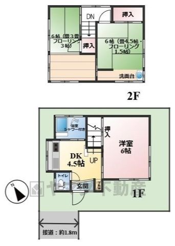 DK4.5畳(1F)、洋6畳(1F)、その他6畳(2F) |