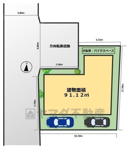土地面積基準 | 公簿 | 接道 | 私道 西 幅員3.8m (接面7.7m) 私道 北 幅員6m (接面8.8m) |