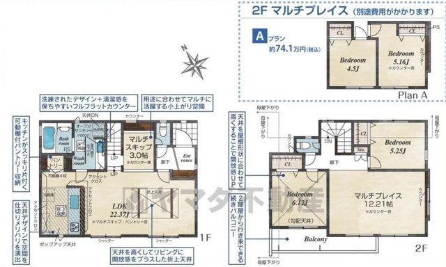 | 間取り詳細 | LDK23.3畳(1F)、洋12.2畳(2F)、洋5.2畳(2F)、洋6.1畳(2F) | 都市計画 | 市街化区域 |